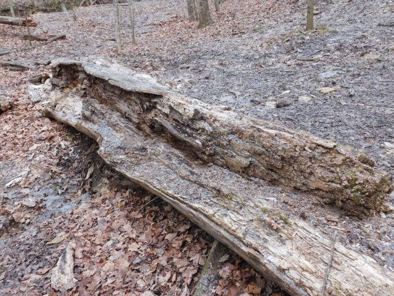 Someone could lie on the "shelf" of this tree trunk (it is big enough) or half on trunk, half dangling off trunk. maybe if a hand or arm dangles off the edge and Tina could get some close ups of just the hand dangling off the edge in addition to other interesting close ups! We could film without leaves on top of person, add some leaves, film again, etc. to change the "weathering" of the dancer back into the earth. Put some snow on tope of someone too, for the really adventurous! This also might be interesting place to have several dancers "resting on/near this fallen trunk. various limbs dangling off of trunk, intertwined limbs, etc. oh the possibilities!