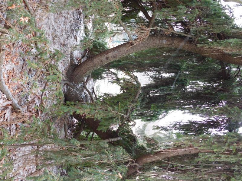 This tree is in the arborateum by the lake at Mt. Airy. There are also other pines that someone could lie, sit, stand under. it would be interesting to include at least one pine, for the green color. Arborateum not the best place to film though, as there are green fences around individual plants/trees throughout that section. Maybe one person could film here, for the pine tree resting scene.